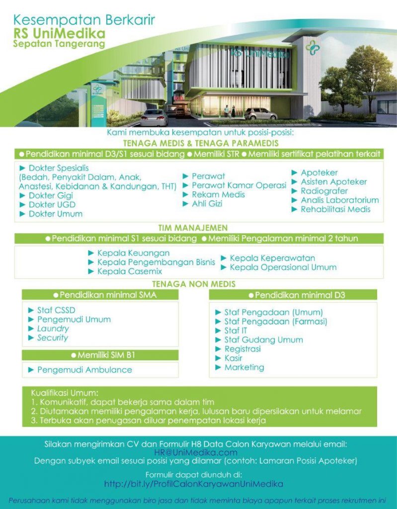 Lowongan Kerja RS. Unimedika oleh ums | Okt 2, 2020 | Loker | 0 Komentar Kirim Komentar Batalkan balasanAlamat email Anda tidak akan dipublikasikan. Ruas yang wajib ditandai *Komentar * Nama * Email * Situs Web Simpan nama, email, dan situs web saya pada peramban ini untuk komentar saya berikutnya.