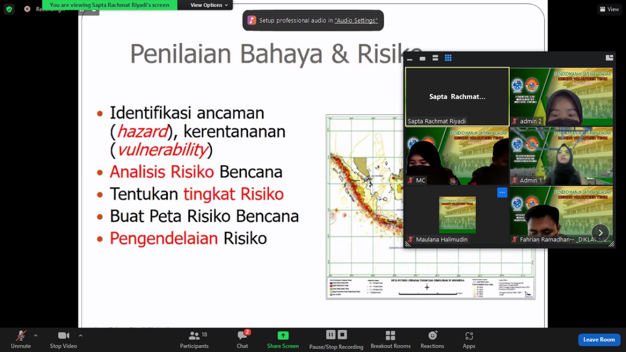 Pada kegiatan Diklat ini peserta dibekali materi : Kebencanaan, Pertolongan Pertama Pada Gawat Darurat dan Navigasi Darat. Harapan Kagiatan ini agar meningkatkan semangat mahasiswa dalam belajar bekerja dan peduli sesama, sehingga Mahasiswa Anggota MEDVOLT dapat memiliki jiwa Integritas, Berdedikasi, Entrepreneur dan Unggul.