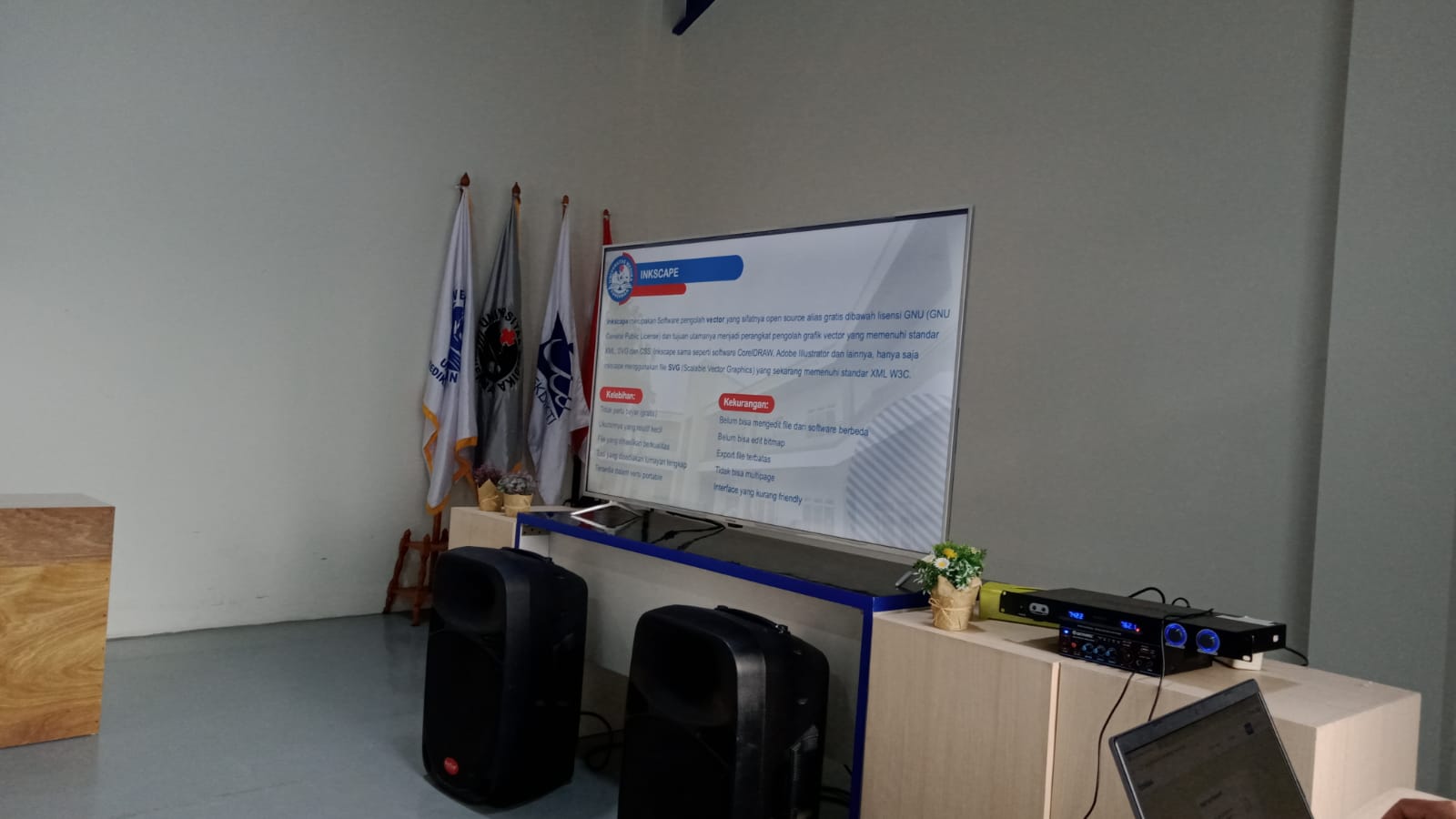 Hadir Pemateri pertama Arif Rahman Hakim, S.Kom., M.Kom. selaku dosen Bisnis Digital memberikan materi Desain Poster menggunakan Aplikasi Inkscape, penggunaan aplikasi ini cukup mudah dan menyenangkan bagi para pemula, harapanya mahasiswa dapat belajar dari pondasi dasar pembuatan Poster yang berisi informasi yang informatif, baik digunakan dalam pemasaran ataupun poster layanan masyarakat. Kegiatan berlangsung dengan aplikatif mahasiswa menggunakana aplikasi dan menghasilkan sebuah karya yang diposting dalam media sosial. “Harapannya pelatihan akan berlanjut secara berkesinambungan supaya kemampuan mahasiswa semakin terasah dan menghasilkan karya yang baik”, pungkas Arif.