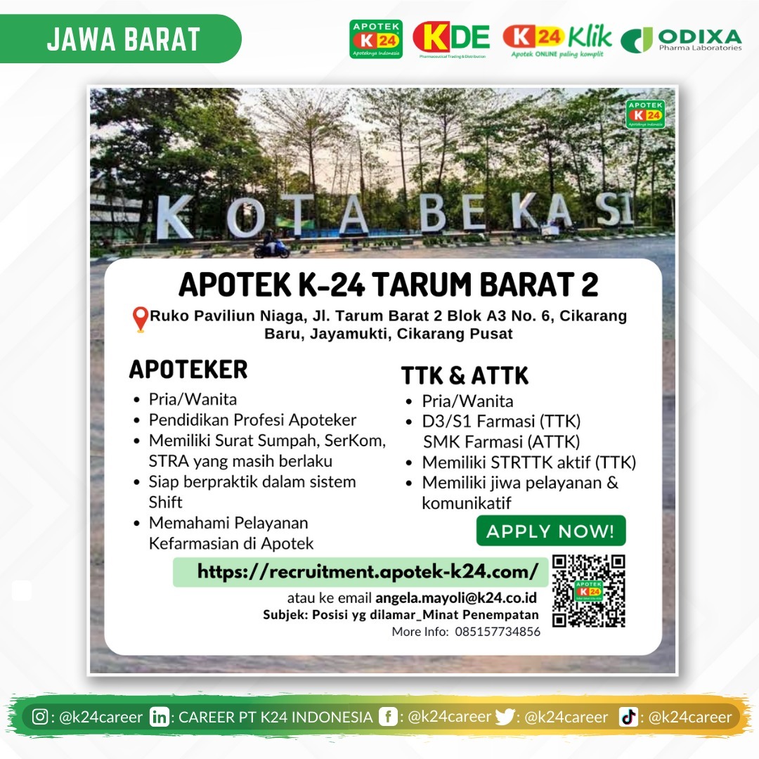 Lowongan Kerja APOTEK K-24 Tarum Barat oleh ums | Jun 16, 2022 | Loker | 0 Komentar UMS memiliki Career Center yang selalu memberikan Informasi Peluang Karir Bagi Para Alumni. UMS, Grab Your Future. Kirim Komentar Batalkan balasanAlamat email Anda tidak akan dipublikasikan. Ruas yang wajib ditandai *Komentar * Nama * Email * Situs Web Simpan nama, email, dan situs web saya pada peramban ini untuk komentar saya berikutnya.