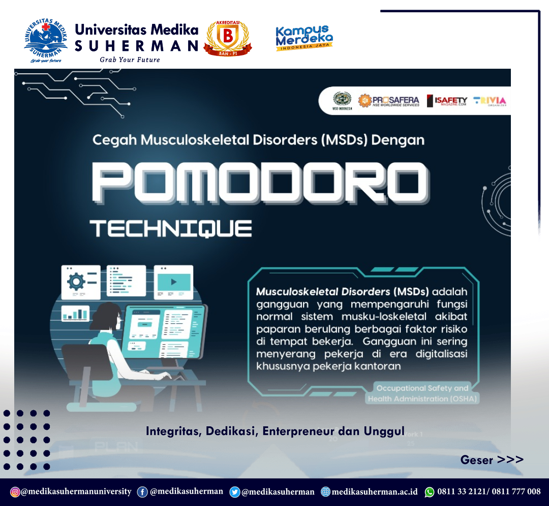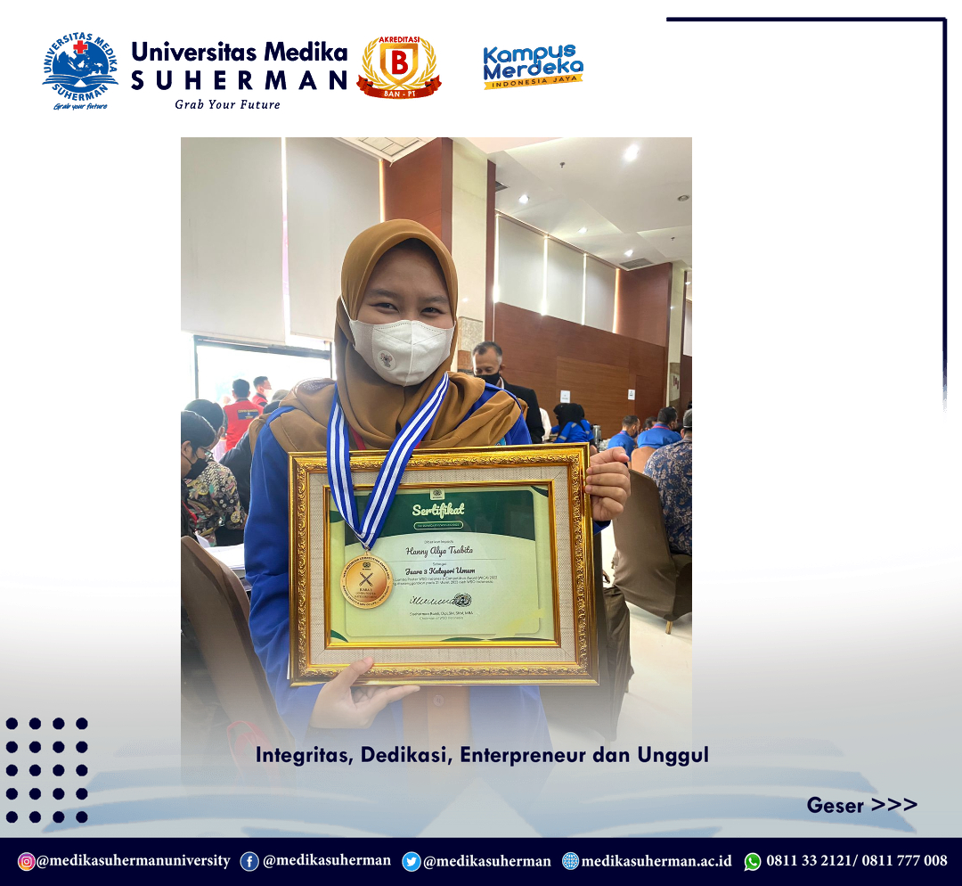 Jakarta, 5 Juli 2022, Hanny Alya Tsabita mahasiswa Prodi Sarjana Terapan Keselamatan dan Kesehatan Kerja (K3) Fakultas Ilmu Vokasi – Universitas Medika Suherman (UMS) mendapat Juara III Lomba Poster yang diselenggarakan dalam rangka menyambut Hari K3 Sedunia (World Safety Day) tanggal 28 April, Hari Pemadam Kebakaran Sedunia (World Firefighter Day) tanggal 4 Mei dan Hari Lingkungan Hidup Sedunia (World Environment Day) tanggal 5 Juni 2022. Kegiatan diselenggarakan oleh WORLD SAFETY ORGANIZATION INDONESIA OFFICE – PROSAFE INSTITUTE.
