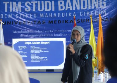 Presiden Mahasiswa Universitas Medika Suherman Muhammad Haykal menyampaikan, sehubungan adanya program kerja dari departemen hubungan luar negeri Institut Teknologi dan Kesehatan Mahardika dan Program kerja Bench Marking, yang dilaksanakan juga oleh Kementrian Luar Negeri BEM Universitas Medika Suherman, dengan ini program kerja tersebut pihaknya berkolaborasi.