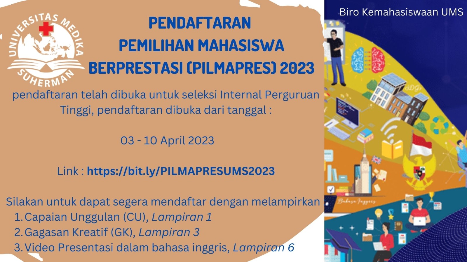 pendaftaran telah dibuka untuk seleksi Internal Perguruan Tinggi, pendaftaran dibuka dari tanggal :