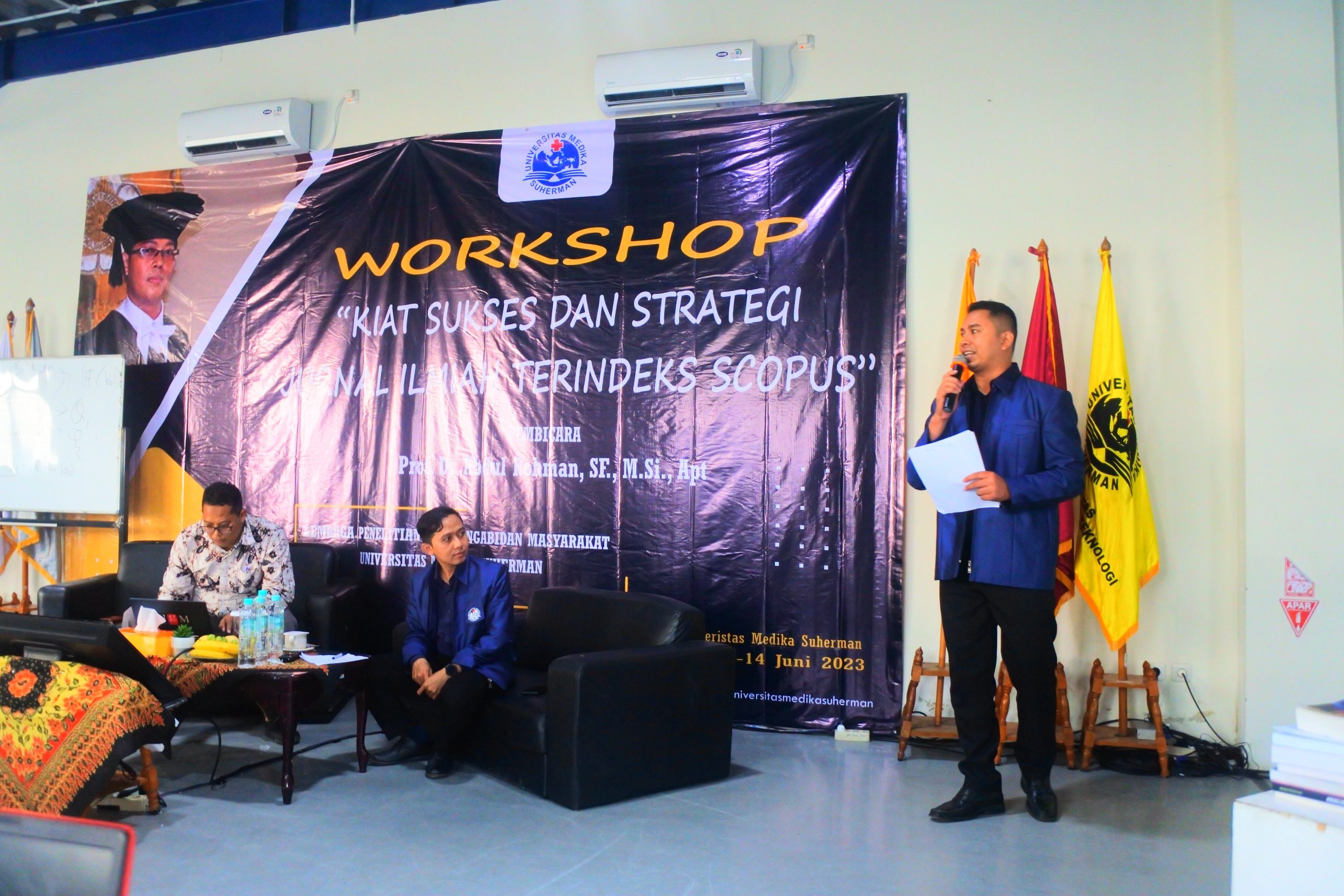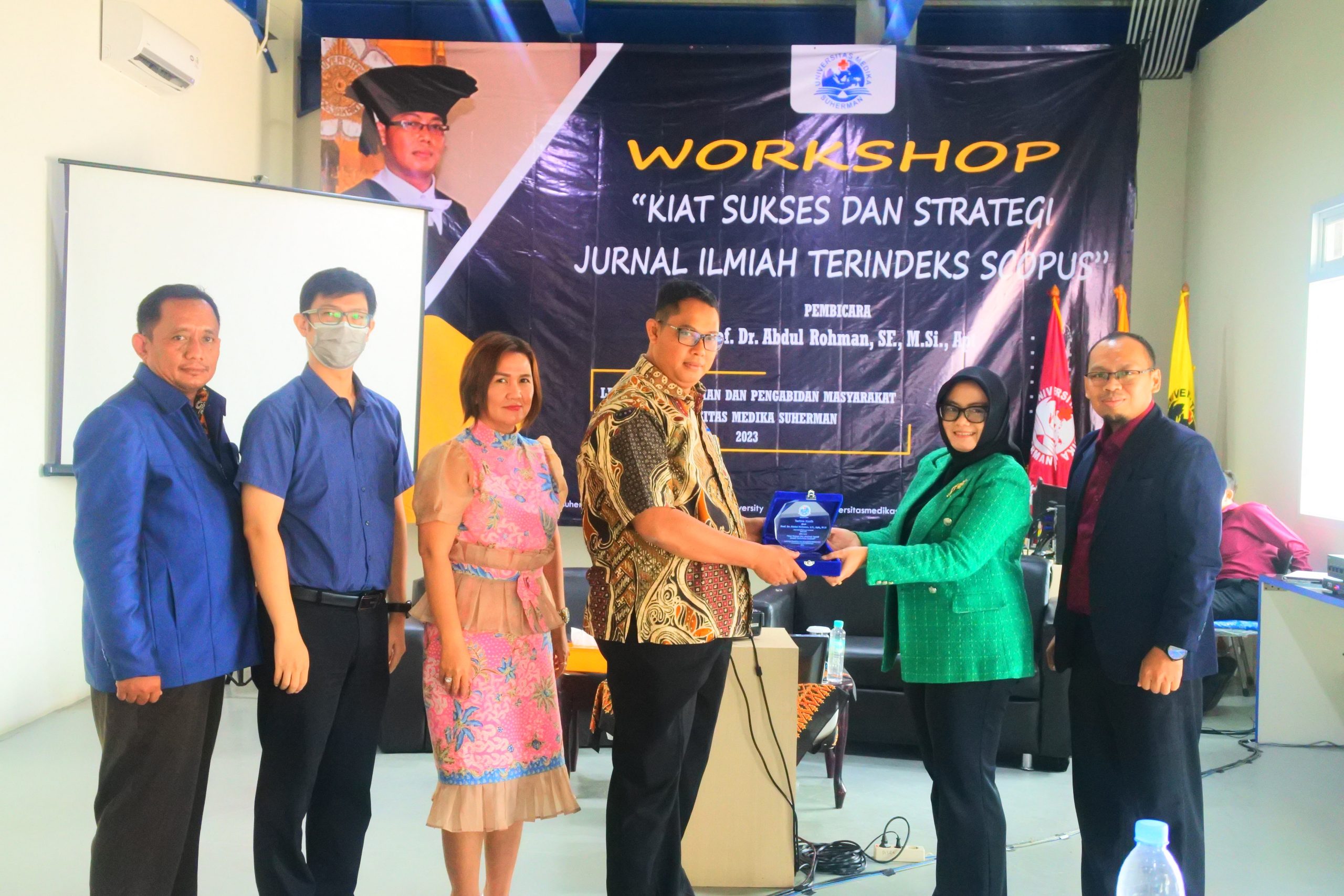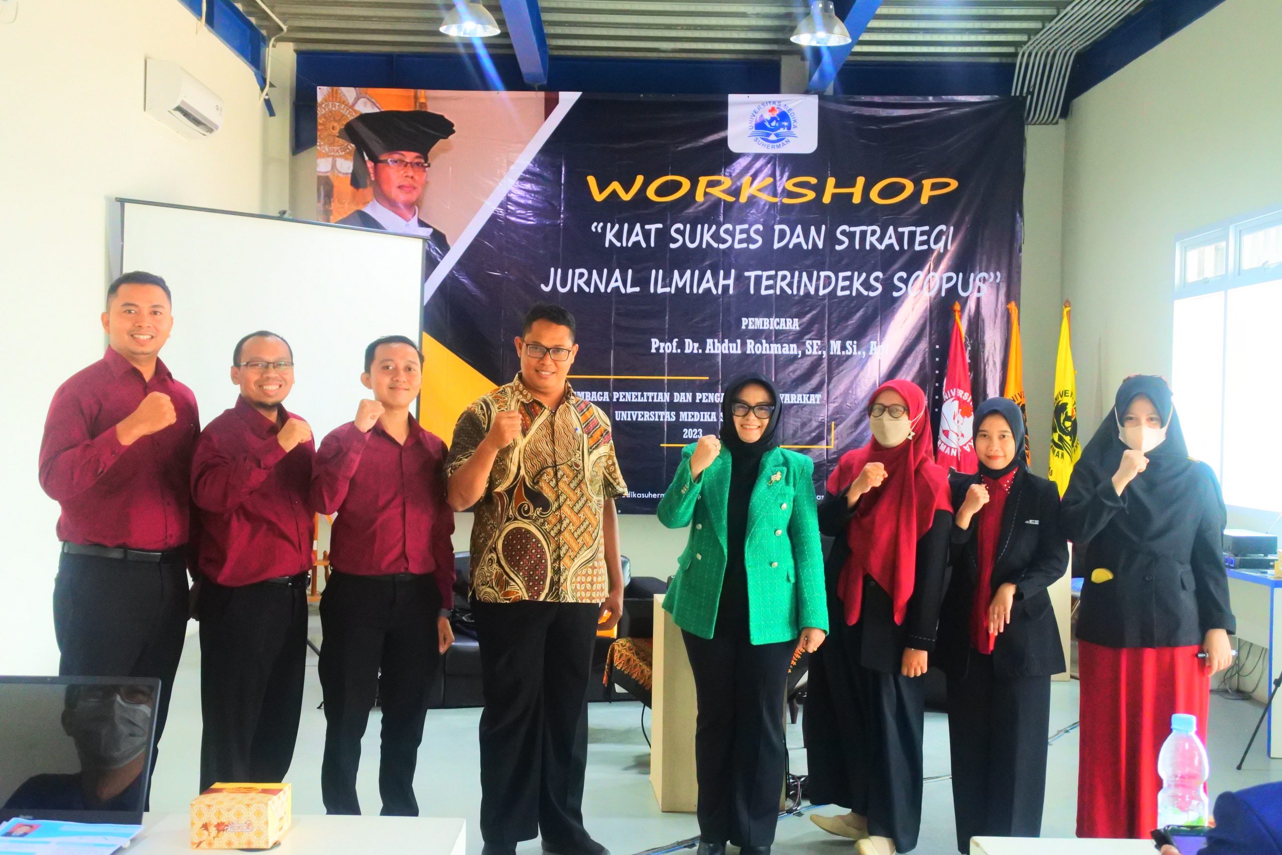 Universitas Medika Suherman, 13-14 Juni 2023, mengadakan Workshop dalam rangkaian kegiatan Dies Natalis Ke-XVIII dengan Tema “Kiat sukses dan Strategi Publikasi Jurnal Ilmiah Terindeks Scopus”. Kegiatan diselenggaran oleh LPPM UMS dengan ketua Ns. Angga Saeful Rahmat, S.Kep., M.Kep., Sp.Kep.Kom. Narasumber Kegiatan Prof. Dr. Abdul Rohman, SF, M.Si., Apt. UMS sengaja mengundang beliau dalam kegiatan karena reputasi dan prestasi yang telah ditorehkan sangat luar biasa, hal ini dapat memberikan inspirasi-inspirasi kepada para dosen-dosen muda UMS untuk dapat sama dengan beliau menghasilkan penelitian-penelitian yang berstandar Internasional. Prof Abdul Rohman tercatat sebagai Associate Editor di Indonesian Journal of Pharmacy (jurnal terindeks Scopus) dan reviewer di beberapa jurnal terindeks Thompson dan Scopus, penghargaan yang diperoleh adalah Young Scientist Scopus Award 2014 dan penerima Anugerah kekayaan Intelektual Luar Biasa dalam Bidang Publikasi Internasional dari Kemenristek Dikti tahun 2014.