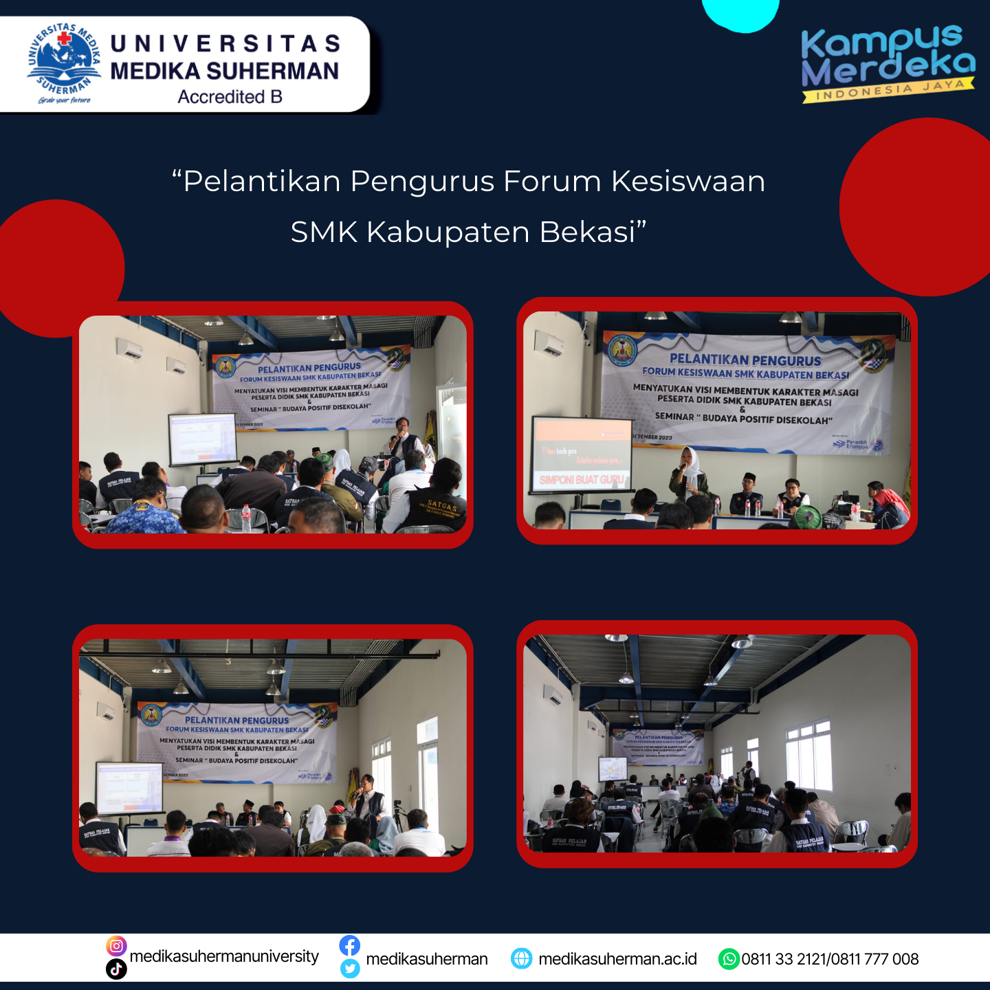 Bekasi, 12 Desember 2023 – Dalam sebuah momentum yang penuh semangat, Satuan Kepala Sekolah SMK Kabupaten Bekasi menggelar acara pelantikan pengurus Forum Kesiswaan. Acara ini diselenggarakan untuk mengukuhkan serta memberikan mandat resmi kepada pengurus baru dalam menjalankan kepemimpinan di forum yang memiliki peran penting dalam menjaga kesejahteraan serta memajukan siswa di lingkungan sekolah.