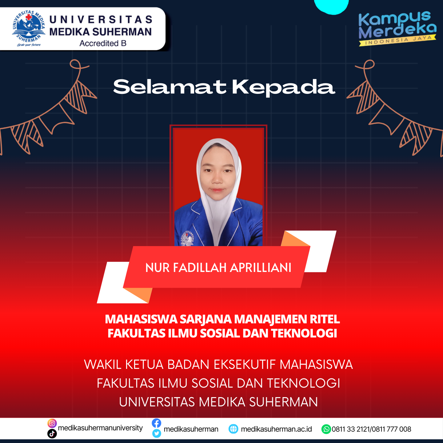 Selamat kepada Muhammad Aziz yang telah terpilih sebagai Ketua dan Nur Fadillah Aprilliani sebagai Wakil Ketua Badan Eksekutif Mahasiswa (BEM) Fakultas Ilmu Sosial dan Teknologi Universitas Medika Suherman! Kemenangan ini adalah hasil dari dedikasi, visi, dan dukungan luas dari rekan-rekan mahasiswa.