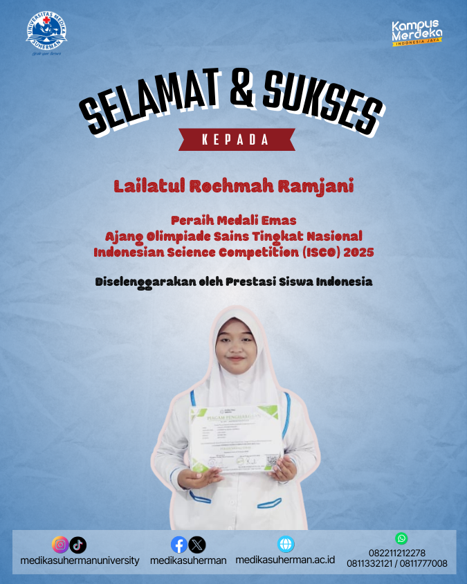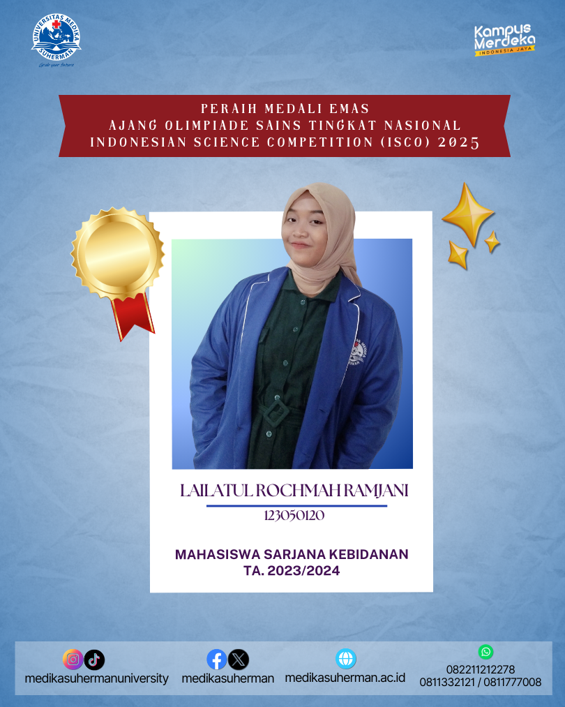 Selamat dan Sukses kepada Lailatul Rochmah Ramjani (Mahasiswi Program Studi Sarjana Kebidanan – FIKES) Peraih Medali Emas dalam Ajang Olimpiade Sains Tingkat Nasional pada tanggal 23 Februari 2025 yang bertajuk Indonesian Science Competition (ISCO) 2025 yang diselenggarakan oleh Prestasi Siswa Indonesia.