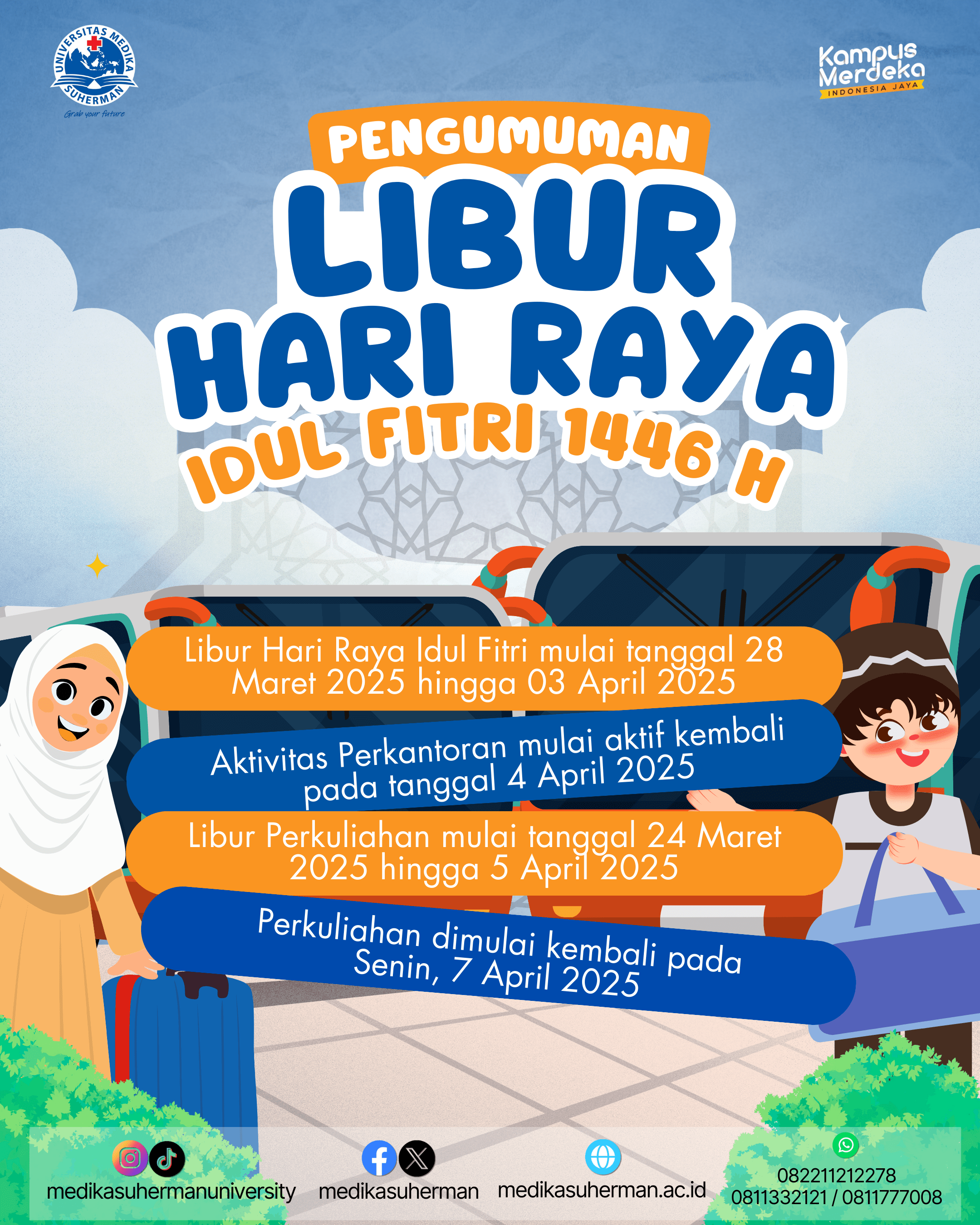 PENGUMUMAN LIBUR HARI RAYA IDUL FITRI 2025 – UNIVERSITAS MEDIKA SUHERMAN oleh Humas | Mar 27, 2025 | Berita, Brosur | 0 Komentar Kirim Komentar Batalkan balasanAlamat email Anda tidak akan dipublikasikan. Ruas yang wajib ditandai *Komentar * Nama * Email * Situs Web Simpan nama, email, dan situs web saya pada peramban ini untuk komentar saya berikutnya.