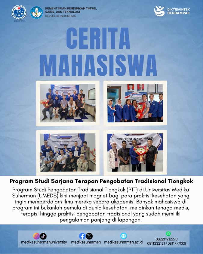 Program Studi Pengobatan Tradisional Tiongkok (PTT) di Universitas Medika Suherman (UMEDS) kini menjadi magnet bagi para praktisi kesehatan yang ingin memperdalam ilmu mereka secara akademis. Banyak mahasiswa di program ini bukanlah pemula di dunia kesehatan, melainkan tenaga medis, terapis, hingga praktisi pengobatan tradisional yang sudah memiliki pengalaman panjang di lapangan.