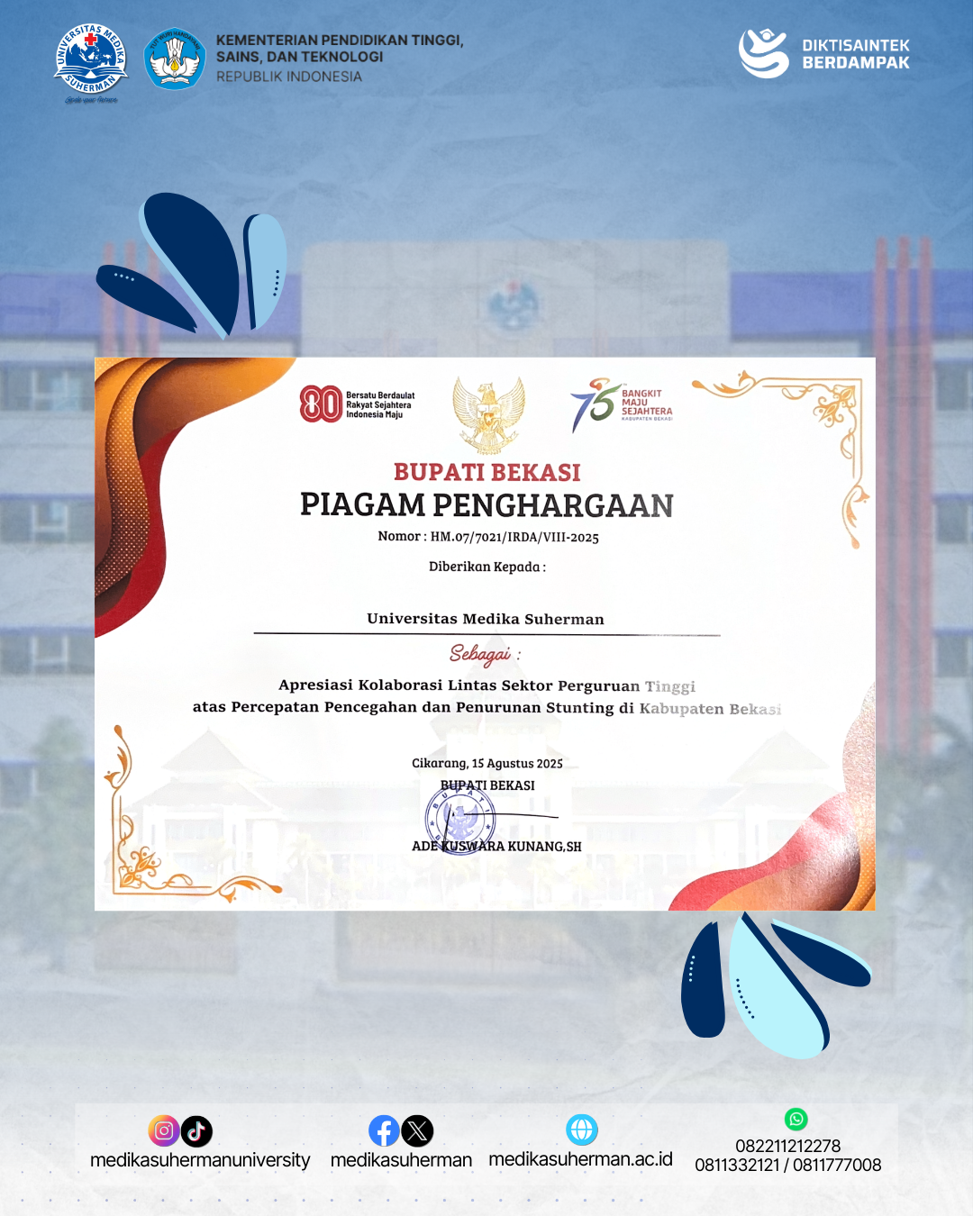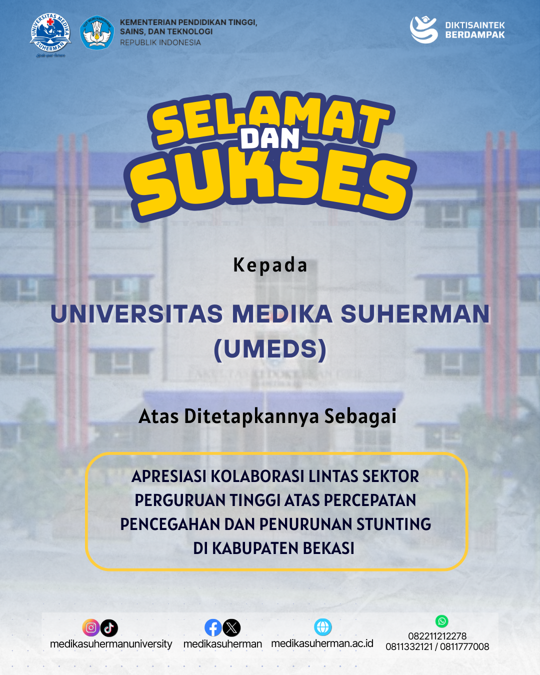 Selamat untuk Universitas Medika Suherman (UMEDS) yang telah mendapat apresiasi atas kolaborasi lintas sektor dalam pencegahan dan penurunan stunting di Kabupaten Bekasi
