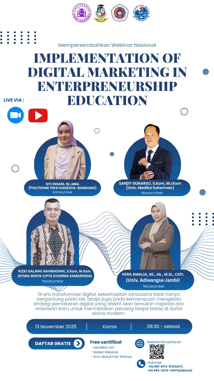 WEBINAR IMPLEMENTATION OF DIGITAL MARKETING IN ENTERPREUNERSHIP EDUCATION (RABU, 13 NOVEMBER 2025)
